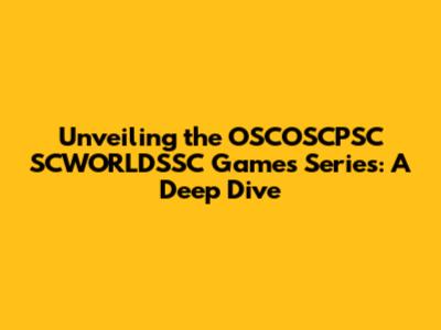 Unveiling The OSCOSCPSC SCWORLDSSC Games Series: A Deep Dive