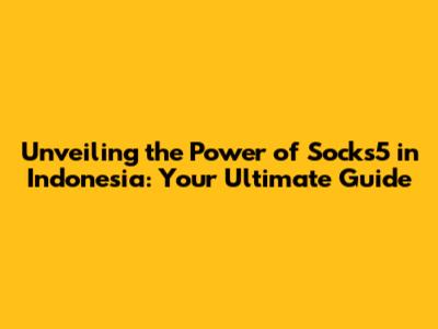 Unveiling The Power Of Socks5 In Indonesia: Your Ultimate Guide