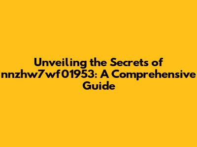 Unveiling The Secrets Of Nnzhw7wf01953: A Comprehensive Guide