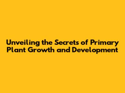 Unveiling The Secrets Of Primary Plant Growth And Development