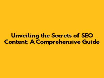 Unveiling The Secrets Of SEO Content: A Comprehensive Guide