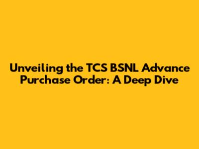 Unveiling The TCS BSNL Advance Purchase Order: A Deep Dive