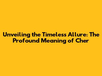 Unveiling The Timeless Allure: The Profound Meaning Of Cher