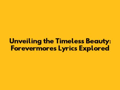 Unveiling The Timeless Beauty: Forevermore's Lyrics Explored