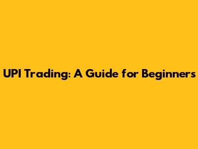 UPI Trading: A Guide For Beginners