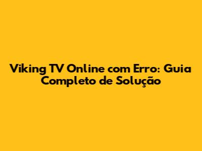Viking TV Online Com Erro: Guia Completo De Solução