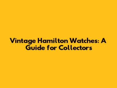 Vintage Hamilton Watches: A Guide For Collectors