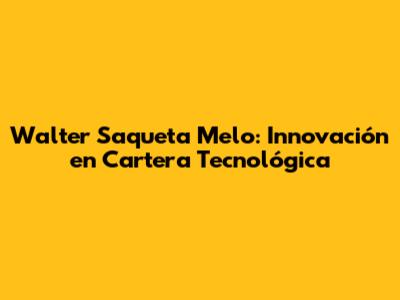 Walter Saqueta Melo: Innovación En Cartera Tecnológica