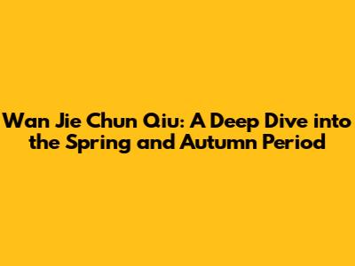 Wan Jie Chun Qiu: A Deep Dive Into The Spring And Autumn Period