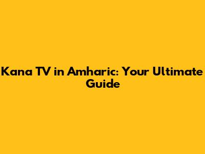 Watch Kana TV In Amharic: Your Guide