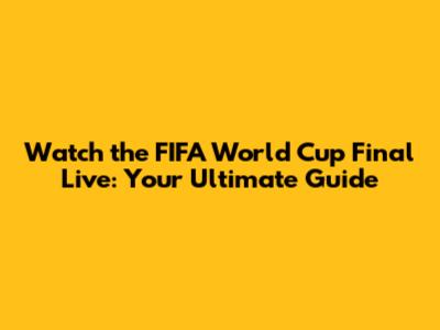 Watch The FIFA World Cup Final Live: Your Ultimate Guide