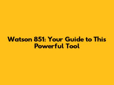 Watson 851: Your Guide To This Powerful Tool