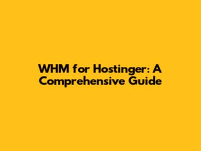WHM For Hostinger: A Comprehensive Guide