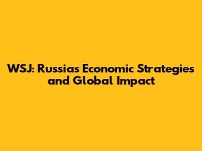 WSJ: Russia's Economic Strategies And Global Impact