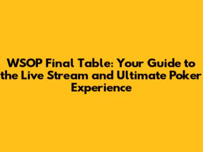 Strategies and Insights for a Better WSOP Final Table Viewing Experience