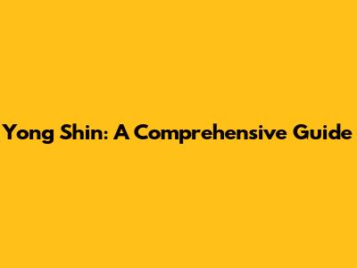 Yong Shin: A Comprehensive Guide