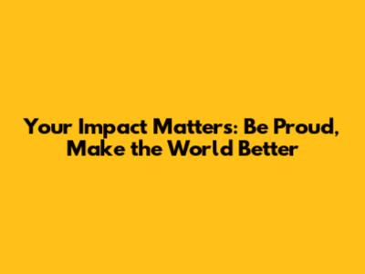 Your Impact Matters: Be Proud, Make The World Better