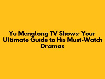 Yu Menglong TV Shows: Your Ultimate Guide To His Must-Watch Dramas
