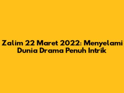 Baiklah, mari kita fokus pada sinopsis Zalim 22 Maret 2022. Episode ini pastinya membawa perkembangan menarik dalam cerita. Biasanya, dalam episode terbaru, kita akan melihat kelanjutan dari konflik yang sedang berlangsung, perkembangan hubungan antar karakter, dan pengungkapan rahasia baru yang akan mengubah alur cerita. Jangan kaget kalau ada kejutan-kejutan yang bikin kita semua tercengang, ya!