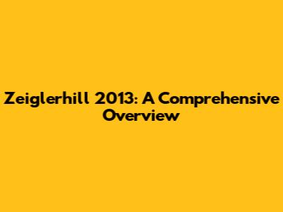 Zeiglerhill 2013: A Comprehensive Overview