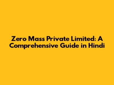 Zero Mass Private Limited: A Hindi Guide